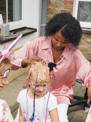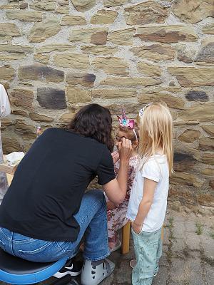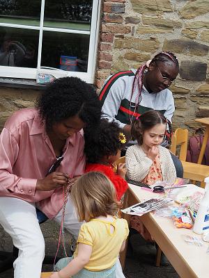 Das sonnige Wetter lud Groß und Klein zum Verweilen im Garten ein, wo Kinderschminken und Zöpfeflechten angeboten wurden. Es wurde getanzt, gesungen und gelacht.