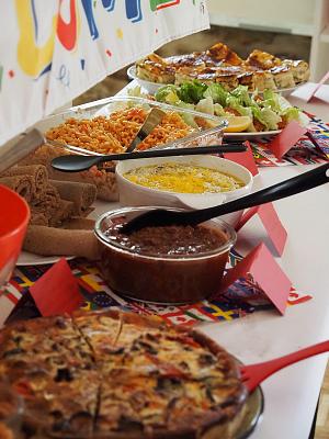 Es gab ein kunterbuntes Buffet, das von italienischer Lasagna über Couscoussalat bis hin zu herzhaftem elsässischem Kuchen reichte.