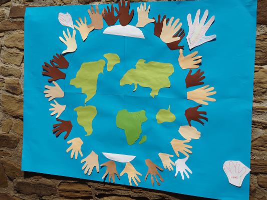 Jeder, der wollte, konnte sein Herkunftsland mit seinem Handabdruck auf einem großen Plakat verewigen, welches nun seinen Platz im Kinderhaus gefunden hat.